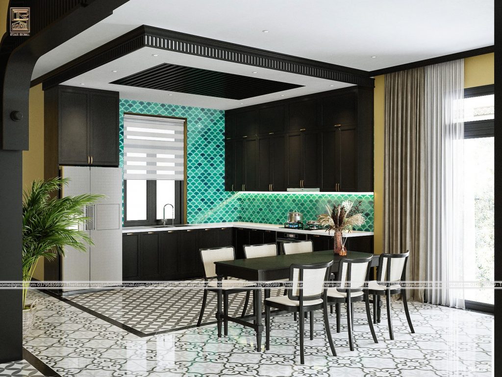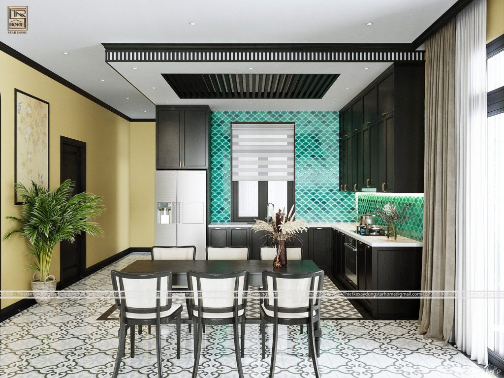– Gạch bông lát nền, nhà bếp là đặc điểm dễ nhận thấy của phong cách Đông Dương, với những họa tiết hoa văn nổi bật, đa dạng được lấy cảm hứng từ văn hóa Đông sơn