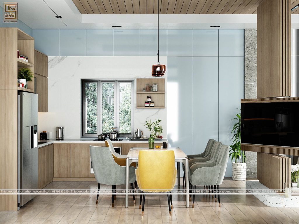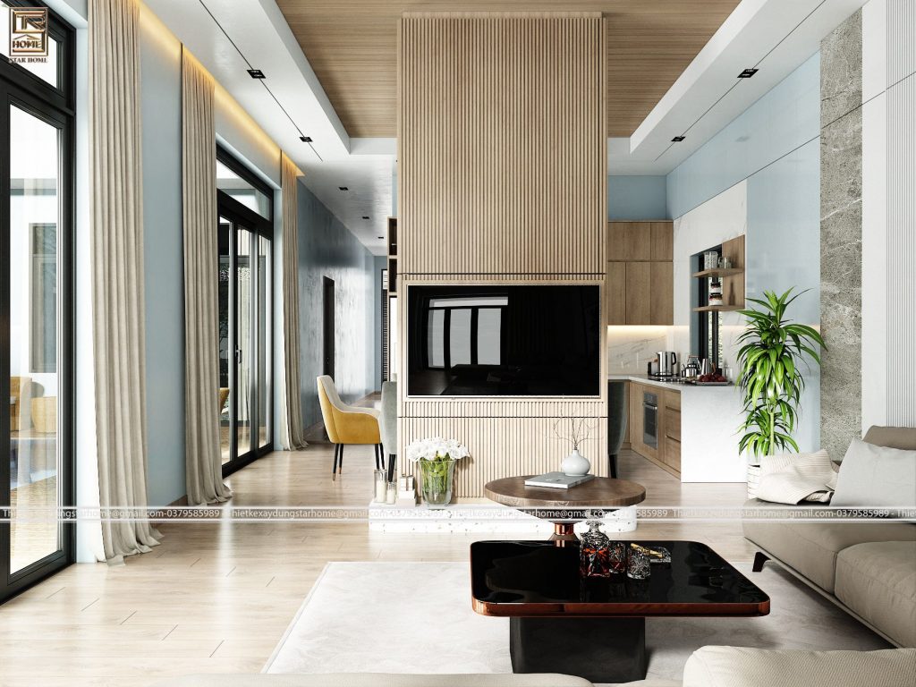 -Từng không gian trong nhà được bố trí hiện đại kết hợp nội thất hài hoà không chỉ tạo nên sự tiện nghi mà còn sang trọng, toát lên được vẻ đẹp của ngôi nhà. Từng chi tiết nhỏ được trau chuốt, không gian thoáng mát, ánh nắng tự nhiên cùng hoà mình với thiên nhiên thì ai mà kiềm lòng được.